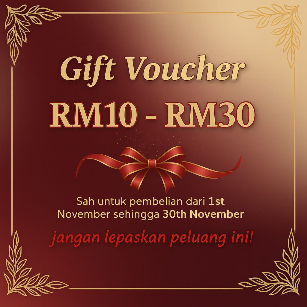 Setiap Pembelian di website ini sahaja, anda akan dapat baucar yang bernilai RM10 – RM30 Untuk Pembelian Seterusnya. Tertakluk pada terma dan syarat.