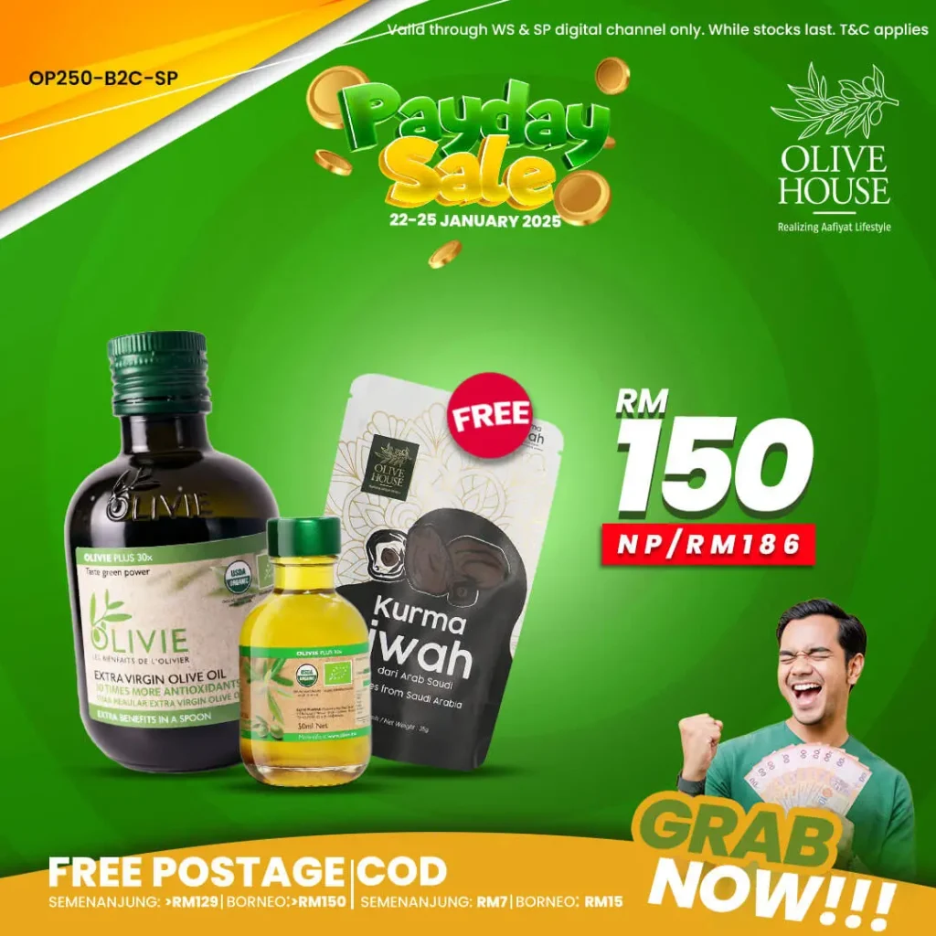 Antara Perbezaan Khasiat MINYAK ZAITUN OLIVIE PLUS 30X