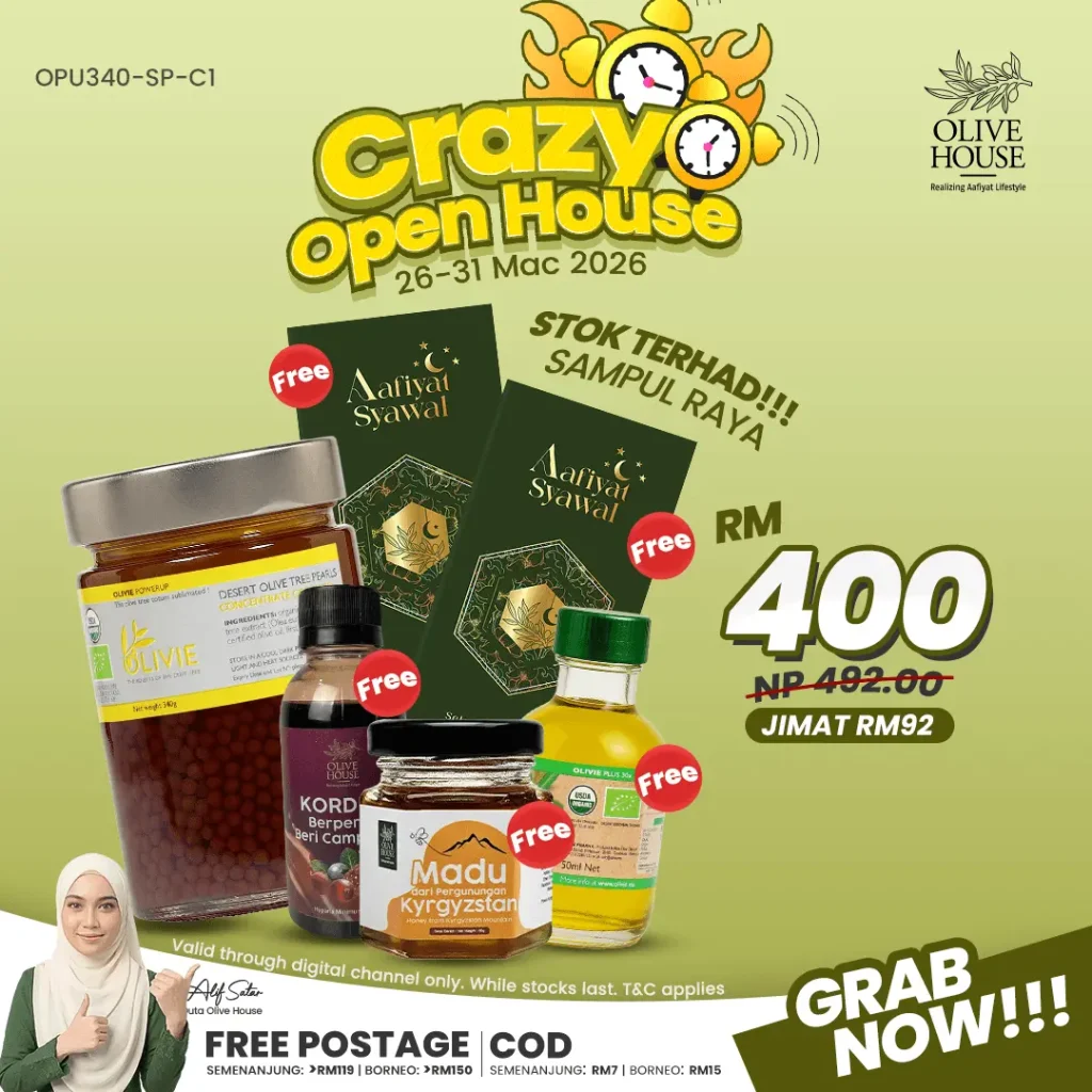 Untuk OLIVIE POWER UP, hanya amalkan 1 sudu kecil 1 kali sehari sebelum tidur atau sebelum sarapan.