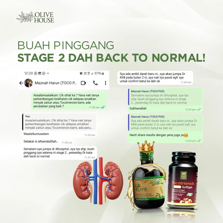 “…Allahuakbar, tak tahu nak cakap macam mana, saya ada masalah jantung kronik, dah habis ikhtiar sebenarnya, Allah temukan saya dengan Minyak Zaitun Olivie Plus & Vitamin Tocotrienols, saya mula amalkan, alhamdulillah jantung saya makin stabil…” Puan Junaidah, 63 Tahun