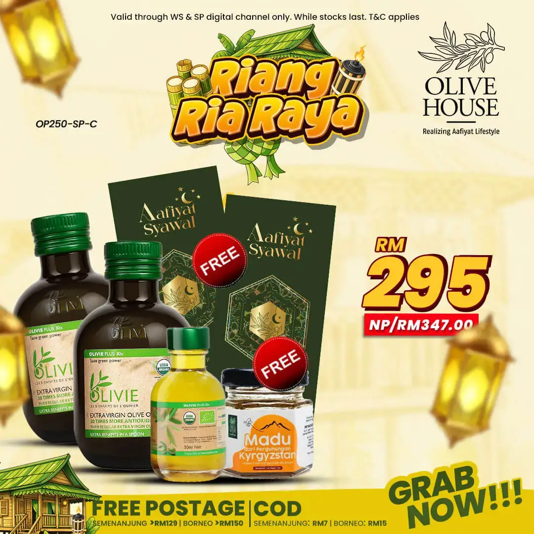 2x Olivie Plus 250ml+ Olivie plus 50ml + FREE Madu Kyrgyzstan 50g + FREE 2x Sampul Raya