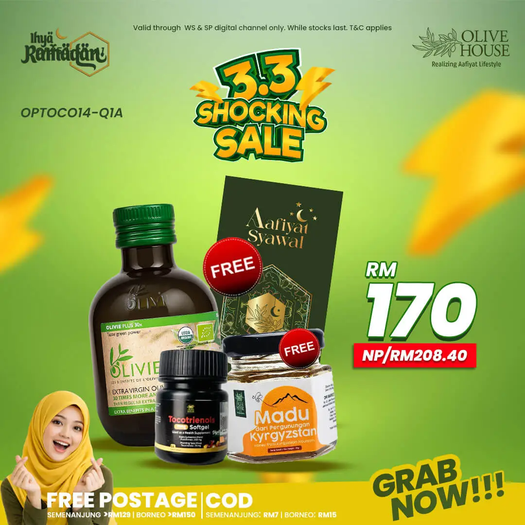 / Olivie Plus 250ml + Tocotrienols Mini + FREE Madu Kyrgyzstan + FREE Sampul Raya